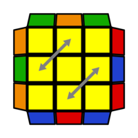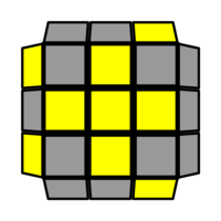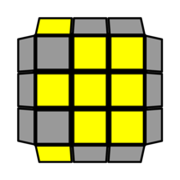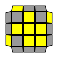 So the first step of 2-look OLL is to orient the edge pieces, like this: