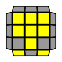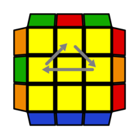 Now that the OLL is done, you can start PLL. This step is called CPLL, as it aims to permute the corners - that is, move them to their correct positions like this: